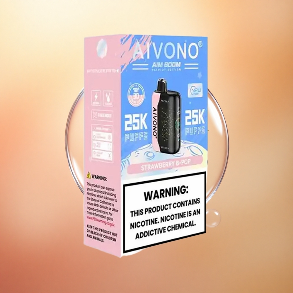 Aivono Aim Boom 25000 Puffs Braškinė B Pop su 650mAh ir 0%, 2%, 3%, 5% nikotino